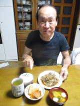 もちろん私家に招待し、洋子ちゃん特性のディナータイムと、合わせたステーキなのですが、「和牛の軟らかいステーキ肉、おいしいですねェー」。これに、野菜スープに、シーチキンサラダ、ブロッコリーの胡麻あえ。加えて、弟と長崎県対馬市で釣った「シロキスのカラアゲ60匹」あり、6人掛けテーブル、イッパイ並べた手作り料理、ありました。